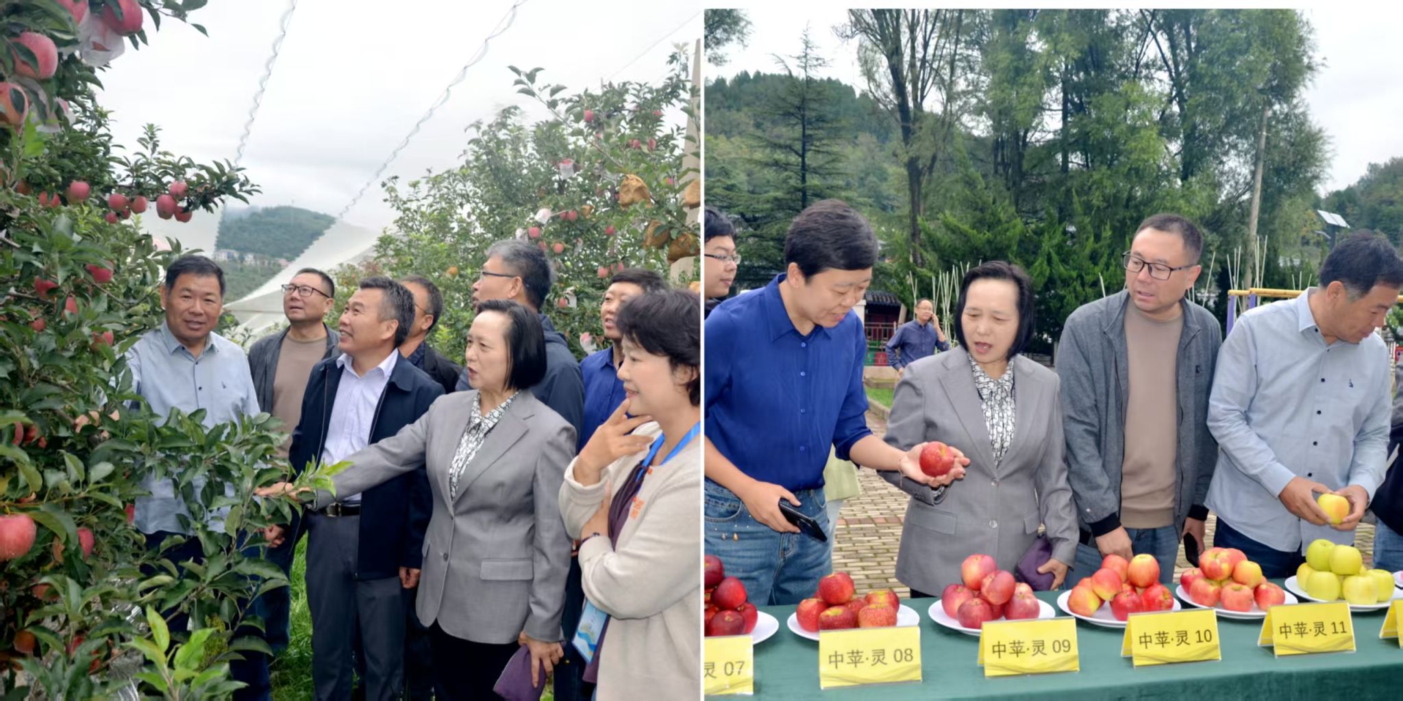 期间,尹新明一行参加了苹果病虫害绿色防控技术集成示范现场观摩,实地察看了绿色防控技术的具体应用效果,进行苹果品种鉴赏。在学术交流环节,听取了与会专家作的植物与真菌病毒研究报告,与多位相关领域的青年教师深入探讨了病虫害防治的最新研究进展,现场学术氛围浓厚。