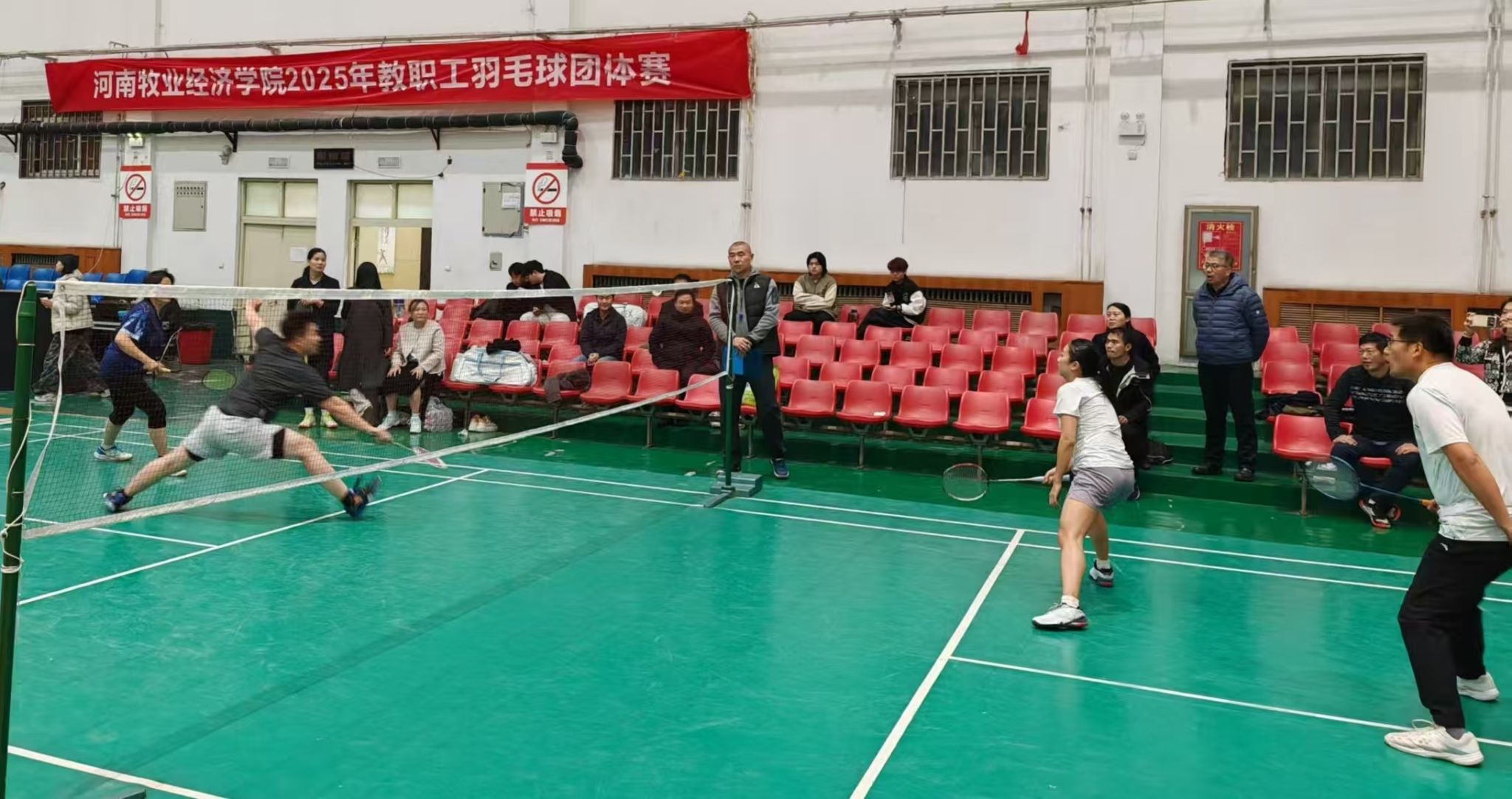 本届羽毛球团体比赛集健身性、娱乐性、观赏性于一体。赛场上,双打搭档默契配合,跳跃、挥拍、扑救,每一个动作都凝聚团队力量;队员和啦啦队的呐喊、鼓劲、相拥,见证了大家的并肩荣光。比赛充分体现了“全员参与、健康同行”的理念,展现了我校教职工的强健体魄和良好风貌,增进了教职工间的交流,更增强了团结拼搏、积极向上的团队凝聚力和集体荣誉感。