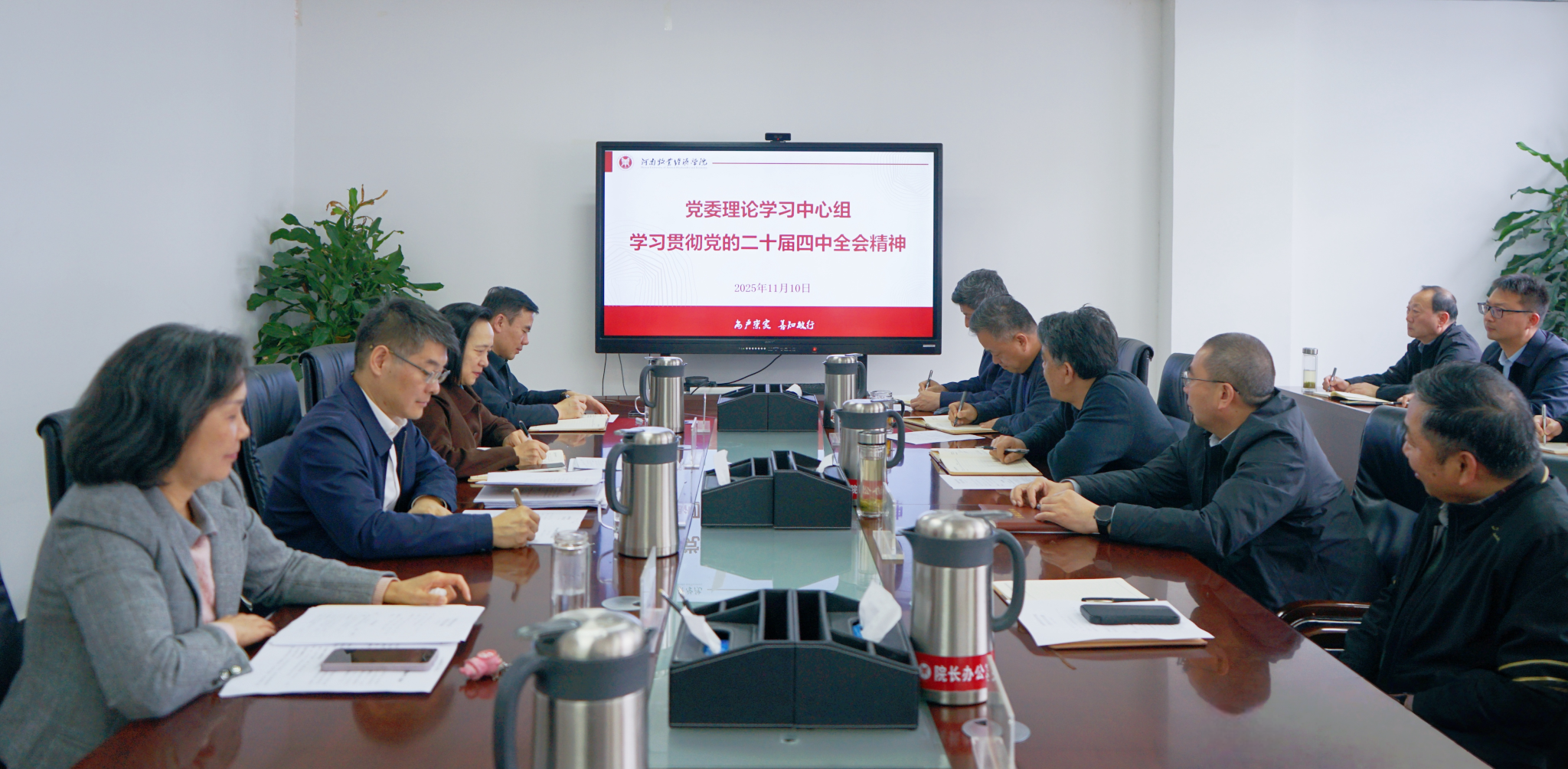 11月10日上午,学校召开党委理论学习中心组学习会,围绕学习贯彻党的二十届四中全会精神开展交流研讨。校党委书记刘志伟主持会议并作总结讲话。校党委理论学习中心组成员参加学习。