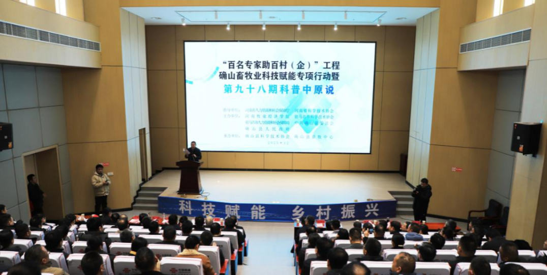 12月14至16日,“百名专家助百村(企)”工程(简称“双百”工程)科技赋能畜牧业高质量发展——河南省专家服务基层示范团确山行活动在确山县举行,政、校、企多方代表齐聚一堂,共同探讨科技赋能确山畜牧业高质量发展的新路径。中国工程院院士、河南农业大学教授康相涛,省科协党组成员、副主席郝立新,驻马店市委常委、副市长邵奉公,我校党委书记刘志伟、副校长杨国宇出席活动。驻马店市科协、市人社局,确山县委、县政府,校党办、发展规划处、社会服务办公室以及相关院系负责人参加活动。