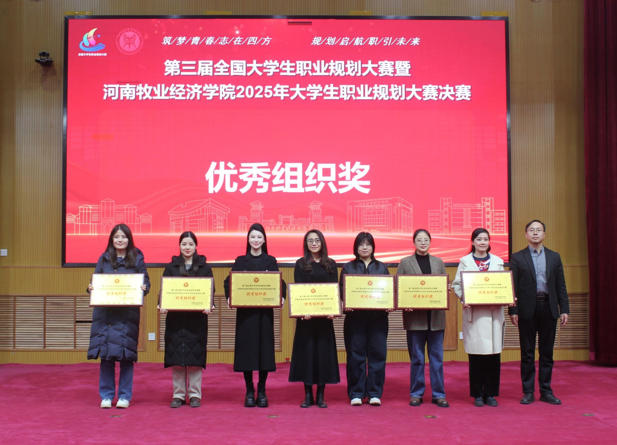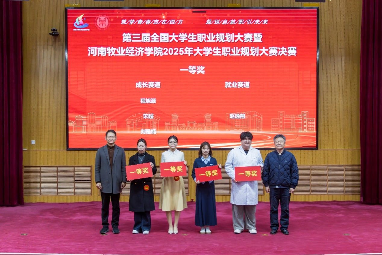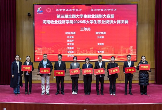决赛现场气氛热烈、秩序井然,掌声此起彼伏。选手们沉着自信、表达流畅,以扎实的专业素养、明晰的规划逻辑和出色的现场应答,展现了新时代大学生的青春风采;评委们围绕职业认知、实践路径、发展潜力等要点进行提问,并结合行业实际给予了精准点评和指导。经过激烈角逐,动物科技学院程旭源、动物医药学院宋越、文法学院刘雅楠获成长赛道一等奖;旅游学院赵逸翔获就业赛道一等奖;两个赛道还分别评选出二、三等奖若干名。文法学院、信息工程学院、动物科技学院、动物医药学院、外国语学院、能源与智能工程学院、旅游学院荣获优秀组织奖。
