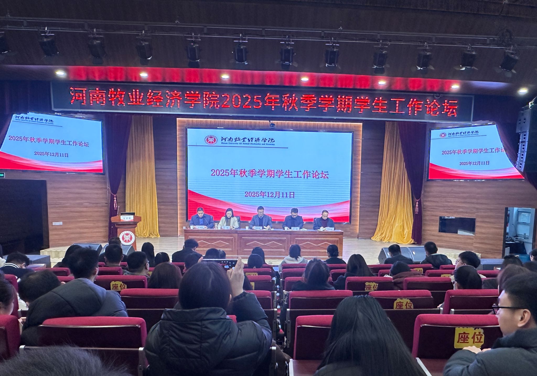 为深入学习贯彻习近平新时代中国特色社会主义思想和党的二十届四中全会精神,有效提升学工队伍建设水平和思想政治教育水平,切实发挥学工队伍在文明养成教育、优良学风创建中的引导和推进作用,近日,学校在龙子湖校区合100报告厅举办2025年秋季学期学生工作论坛。校党委副书记姚毅出席会议并讲话。学生工作各职能部门负责人,各学院党委副书记、团委书记(学工办主任)、团委副书记(学工办副主任)及全体辅导员参加会议。会议由党委学工部部长郝景昊主持。