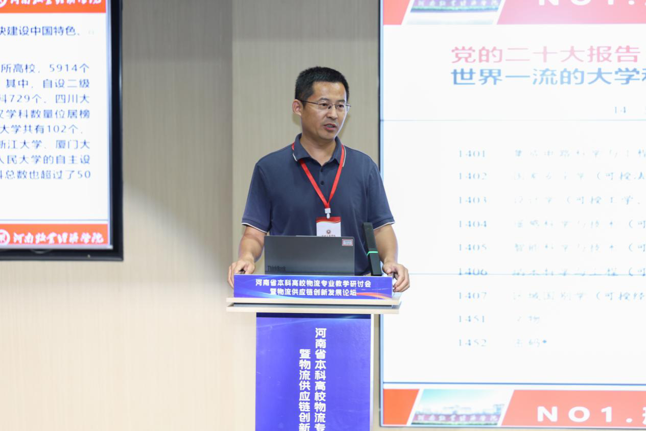会上,于晓胜以《跨学科融合背景下物流工程专业(冷链物流)改革路径》为题,系统分享了我校在冷链物流领域的建设经验,详细阐述了学院依托河南省冷链物流工程技术研究中心和河南省冷链物流行业学院,形成的“牧工商一体化”特色课程群。他提到,学院连续五年承担省级冷链物流发展规划编制,70%的科研成果直接应用于河南‘四路协同’物流枢纽建设,真正实现教育与产业的‘零距离’对接。
