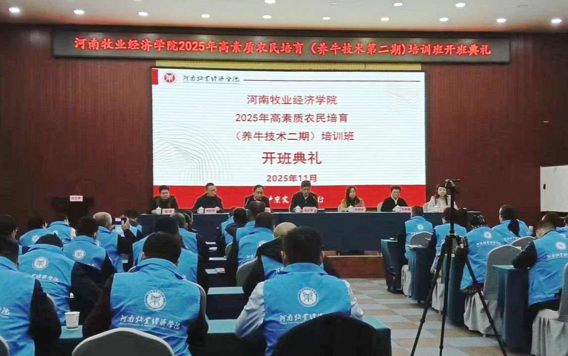11月15日上午,由我校承办的2025年高素质农民培育(养牛技术二期)培训班开班典礼在河南现代农业研究基地报告厅举行。副校长岳彩军出席开班典礼,我校养牛技术专家石冬梅、继续教育学院领导班子成员及来自全省各地的70名学员代表参加开班典礼。开班典礼由继续教育学院院长牛晖主持。