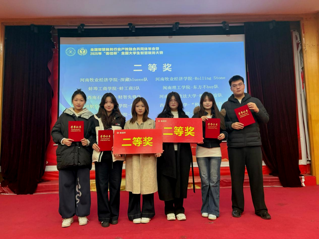 近日,2025年全国智慧税务行业产教融合共同体年会暨“衡信杯”全国大学生智慧税务大赛(第十一届)总决赛在江西财经大学举行。经过激烈的角逐,金融与会计学院派出的两支参赛团队双双荣获全国本科组二等奖。