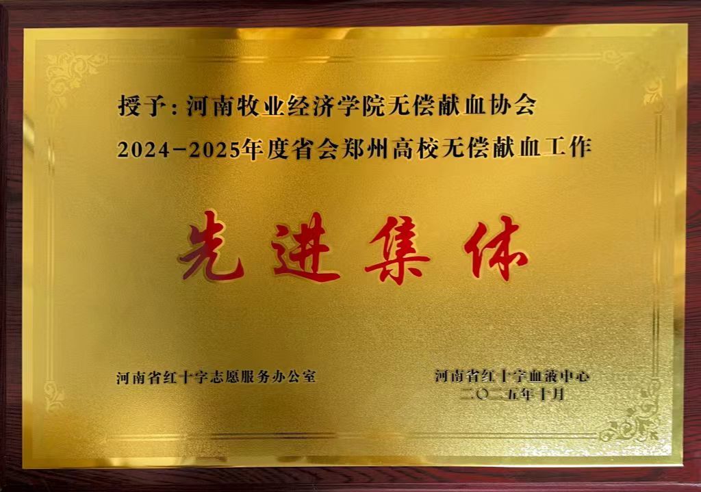 近日,河南省红十字血液中心公布了2024-2025年度省会郑州高校无偿献血工作表彰名单,我校能源与智能工程学院无偿献血协会凭借其卓越表现,荣获“先进集体”称号。