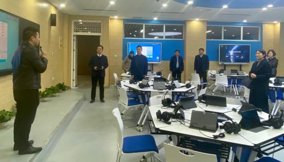 在深入的交流研讨后,王志伟等到我校虚拟仿真语言学习中心进行了实地考察。(任思洋/文 邢苏新/图)