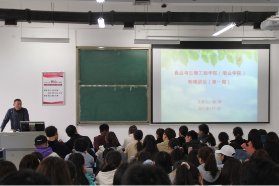4月1日下午,食品与生物工程学院“明理讲坛”第一期顺利开讲,学院邀请思念食品有限公司生产总监、我校校友徐锋在1号教学楼合402教室作“成长的感悟”报告。食品与生物工程学院党委副书记赵贺然、副院长邹建,团委书记马永生,全院辅导员教师及150余名学生参加报告会。报告会由赵贺然主持。