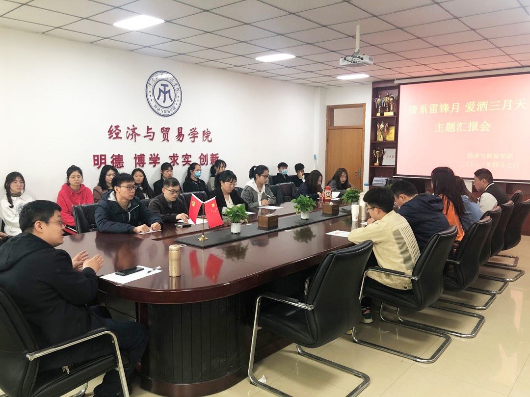 4月7日,经济与贸易学院在英才校区教学楼327会议室召开“情系雷锋月,爱洒三月天”志愿服务活动总结汇报会。经济与贸易团委相关负责人、辅导员教师、学生会干部代表和11支志愿服务队成员参加会议。