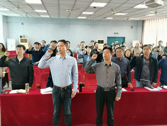 会上,史岳鹏带领全院教师为夺取本科教学工作合格评估的最后胜利进行集体宣誓。
