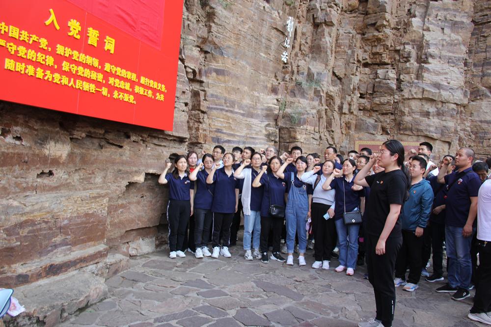 全体党员参观了红旗渠纪念馆、青年洞等,亲身感受了红旗渠的建设艰辛和宏伟气势,深刻领悟了“自力更生、艰苦创业、团结协作、无私奉献”的红旗渠精神。红旗渠是人类历史上鲜见的、纯粹为人民福祉而创造的奇迹,它不仅写满了中国共产党人的初心,更彰显了党自身所特有的、无比高贵的精神品格。面对鲜艳的党旗,全体党员举起右手庄严宣誓,重温入党誓词,表达了为党的事业奋斗终身的决心。