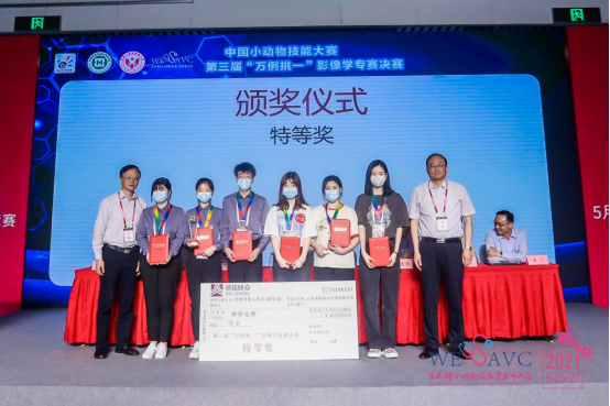 5月25-27日,中国小动物技能大赛第三届“万例挑一”影像学技能专赛决赛在四川省成都市中国西部国际博览城第十三届东西部小动物临床兽医师大会现场举行,大赛由全国农业职业教育教学指导委员会指导,中国现代畜牧业职教集团、东西部小动物临床兽医师大会、北京德铭联众科技有限公司主办,中国现代畜牧业职教集团宠物专业委员会、上海现代农业职教集团、上海农林职业技术学院联合承办。我校动物医药学院学生首次参加影像学技能大赛,并荣获特等奖。
