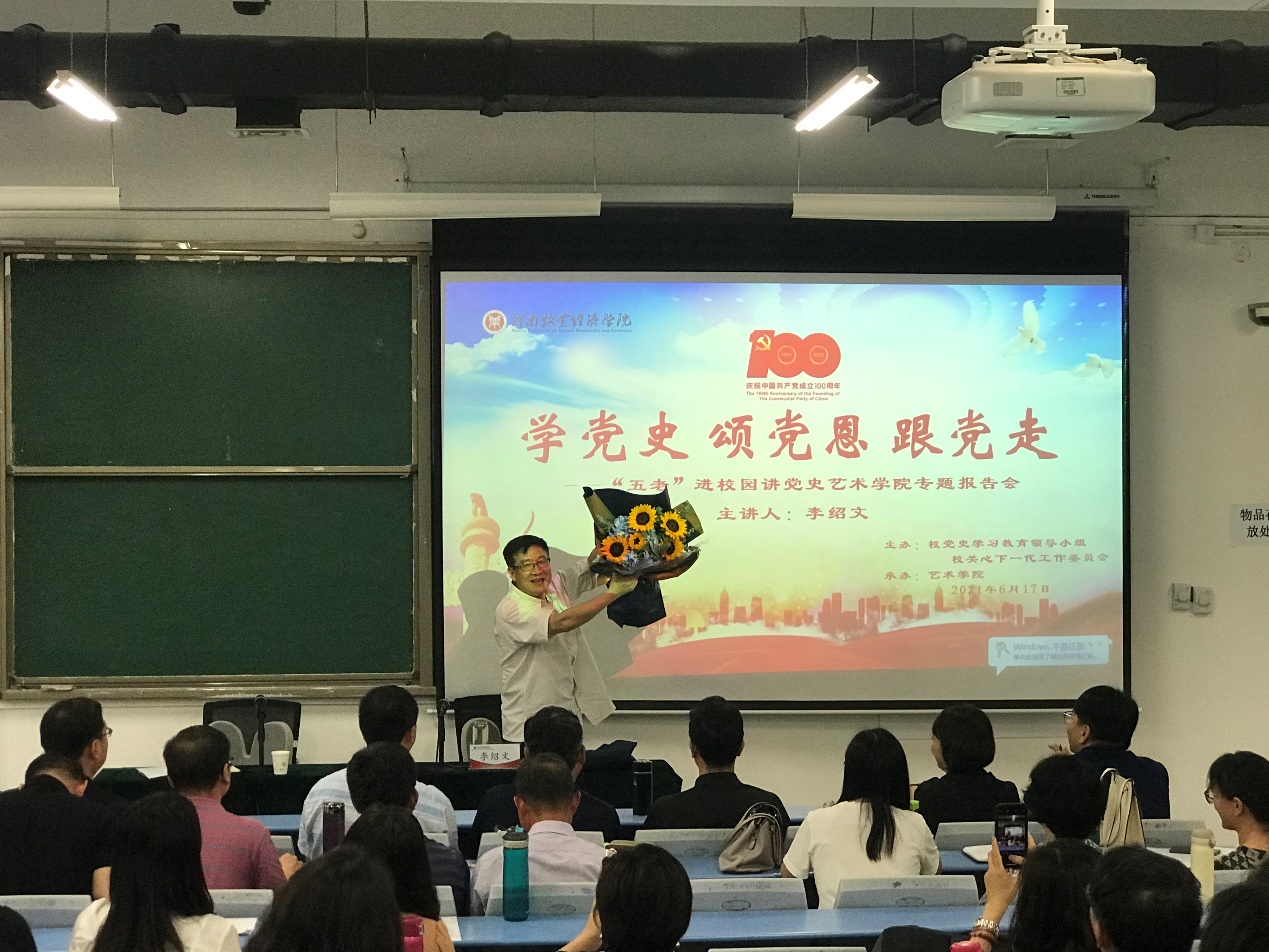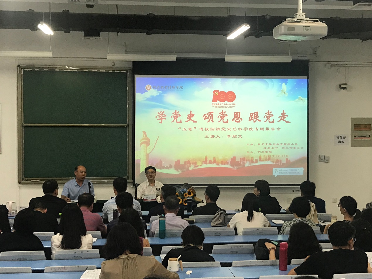 近日,艺术学院党委邀请我校原党委副书记李绍文教授,开展“学党史、颂党恩、跟党走”专题报告会。艺术学院全体教师,学生党员代表和入党积极分子代表共计160余人参加报告会。报告会由艺术学院党委书记王在钦主持。