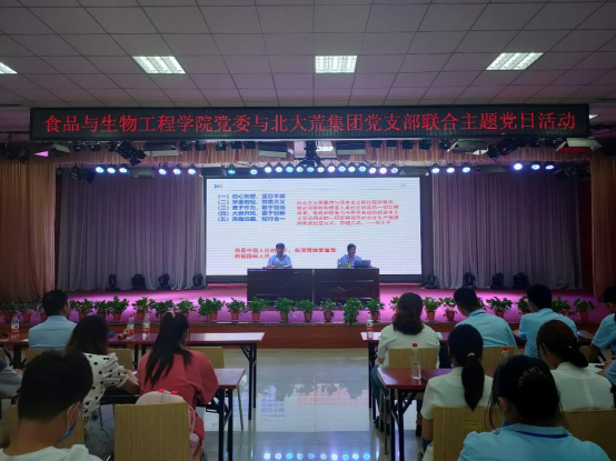 近日,食品与生物工程学院(酒业学院)党委与北大荒集团党支部在龙子湖校区大学生活动中心联合开展主题党日活动。北大荒集团党支部39名职工党员与食品与生物工程学院(酒业学院)110余名师生党员参加此次活动。活动由食品与生物工程学院(酒业学院)党委书记赵安勇主持。