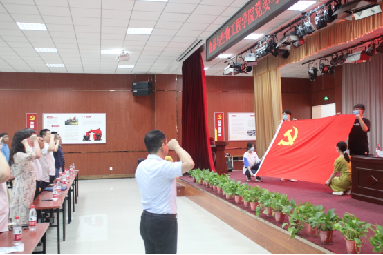 全体参会党员在食品与生物工程学院(酒业学院)党委副书记赵贺然的带领下重温入党誓词。