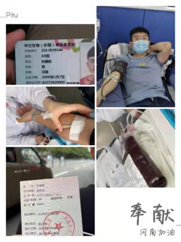 2019级学生杜朝松、2020级学生王锦航分别无偿献血400ml,用行动践行了责任与使命,为广大青年树立了榜样。