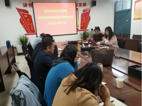 10月12日下午,食品与生物工程学院在龙子湖校区善知楼A-426会议室召开同武陟县校地合作科技对接服务座谈会。食品与生物工程学院院长潘春梅、副院长邹建和该院9个科研创新团队负责人参加了会议。会议由邹建主持。
