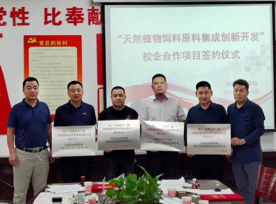 据悉,本次校企合作项目“天然植物饲料原料集成创新应用”由汤法银、樊克锋牵头,新乡博凯生物技术有限公司、河南炎黄生物工程有限公司、中兽医(汤阴)生物科技有限公司、漯河汇德生物科技有限公司、河南贝里奥生物科技有限公司、焦作八方本草生物科技有限公司、徐州天意动物药业股份有限公司、河南东灿药业科技有限责任公司、河南全印检测技术有限公司等9家企业合作参与。(樊克锋/文 李向辉/图)