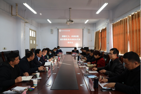 12月3日,动物医药学院在北林校区创业孵化园401会议室举行畜牧兽医类企业校友代表座谈会。学校大学生就业创业指导服务中心主任卢有峰,校友工作办公室主任王春明,动物医药学院党委书记刘永录,动物科技学院党委书记王建伟,校友工作办公室副主任王胜果,动物医药学院副院长汤法银,与郑州君聚商贸有限公司总经理段文斗等18位优秀校友代表参加座谈会。座谈会由动物医药学院副院长吴玉臣主持。