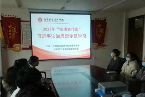 12月5日,马克思主义学院在英才校区综合楼(原行政楼)416会议室开展“宪法宣传周”之习近平法治思想专题学习活动。马克思主义学院思想道德修养与法治教研室主任李鲲鹏主讲,马克思主义学院教师代表,2021级审计01班、2021级投资01班等学生代表参加。