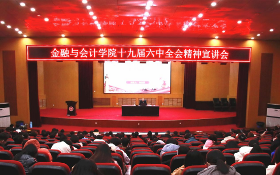 12月16日下午,金融与会计学院在英才校区学术报告厅召开党的十九届六中全会精神宣讲会。金融与会计学院党委书记陈复昌主讲,该院全体教师和学生代表参加宣讲会。