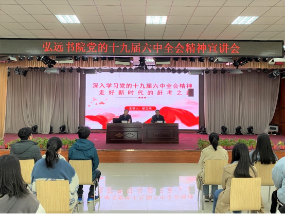 12月21日下午,弘远书院在龙子湖校区大学生活动中心开展深入学习党的十九届六中全会精神报告会。弘远书院党委副书记、副院长(主持工作)胡卫东主讲,党委副书记兼副院长陈明主持。