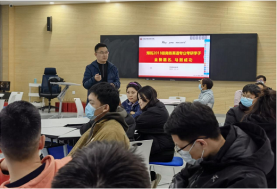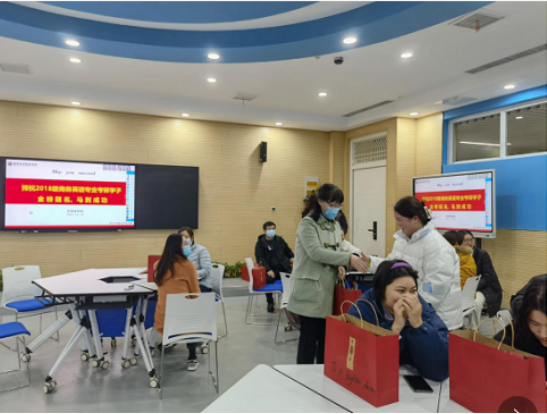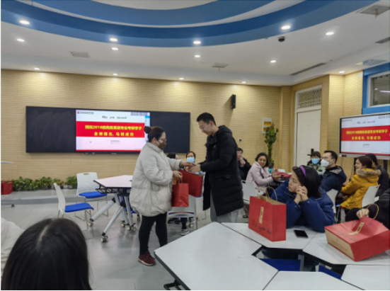 12月14日,外国语学院在龙子湖校区尚严楼104口语智慧实验室为2018级商务英语专业考研学子送上暖心大礼包,为考研学子鼓劲加油,温暖护航。