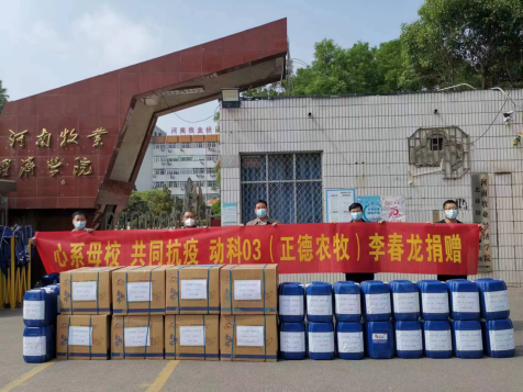 河南飞隆动物药业有限公司是动物科技学院牧业产教融合战略联盟副理事单位,常年支持学校发展,赞助学院各类文体活动,参与学院新生入学教育工作,学院也为企业输送了大量优秀毕业生。在学校疫情防控的艰难时刻,河南飞隆动物药业有限公司助力学校疫情防控工作,为学校捐赠善款。