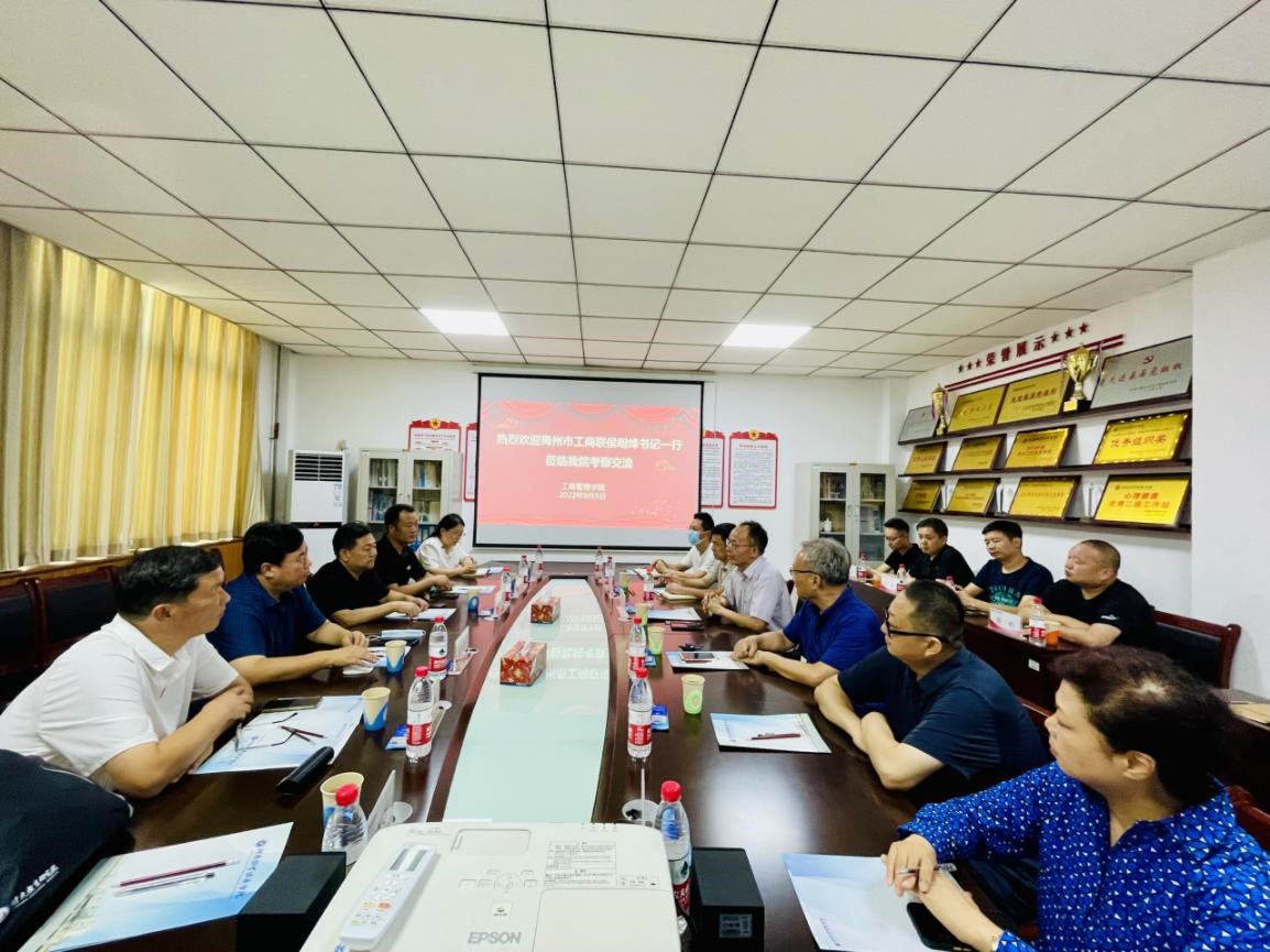 9月5日下午,禹州市委统战部副部长、工商联党组书记、副主席侯明烽等一行五人到我校工商管理学院考察交流。工商管理学院班子成员、教授和博士代表参加座谈。