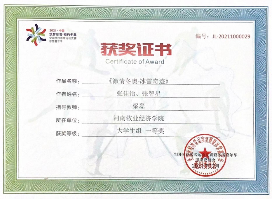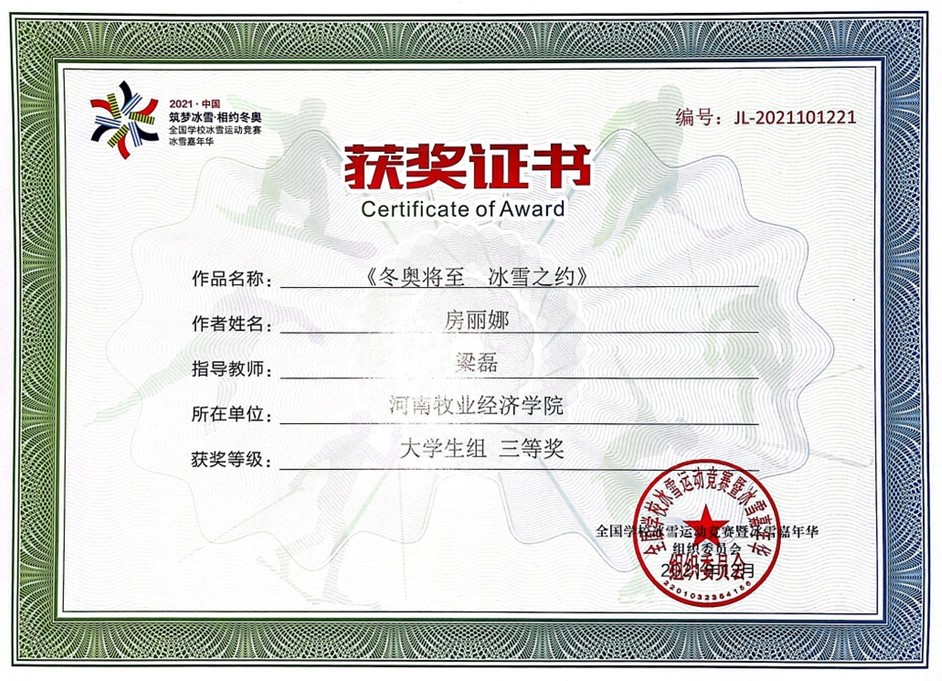 近日,“筑梦冰雪•相约冬奥”2021年第三届全国学校冰雪创意设计大赛获奖名单公布。我校艺术学院选报的作品《激情冬奥 冰雪奇迹》荣获一等奖,《冬奥将至 冰雪之约》荣获三等奖。梁磊被评为大赛“优秀指导教师”。