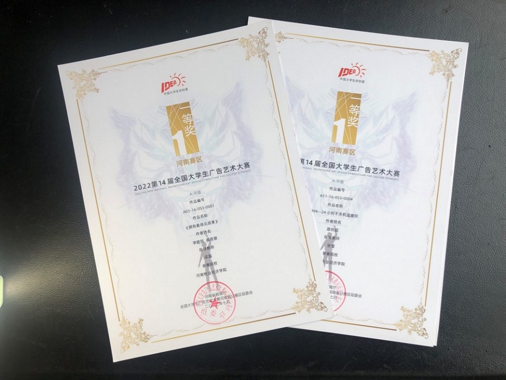 近日,艺术学院师生在第14届全国大学生广告艺术大赛(河南赛区)中创下佳绩,共荣获一等奖4项、二等奖11项、三等奖12项、优秀奖12项。梁磊、张莹、李好敏、王霜等荣获河南赛区优秀指导老师荣誉称号。