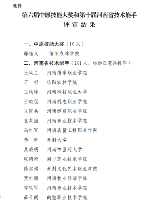 近日,省人社厅发布了关于第六届中原技能大奖和第十届河南省技术能手评选结果的公示。旅游学院贾红丽老师荣获“第十届河南省技术能手”荣誉称号。这是贾红丽老师在荣获河南省人社厅“茶艺技能大师”、河南省教科文卫体系统示范性“师带徒”标兵之后又一个省级荣誉!