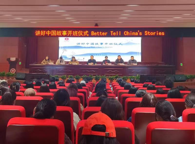 3月23日中午,弘远书院在图书馆一楼报告厅举办特色通识课程《用英语讲好中国故事》开班仪式。弘远书院院长赵贺然,党委副书记兼副院长李特,教师代表和课程全体学员参加仪式。该仪式由李特主持,弘远书院育人导师刘丹凝进行交替翻译。
