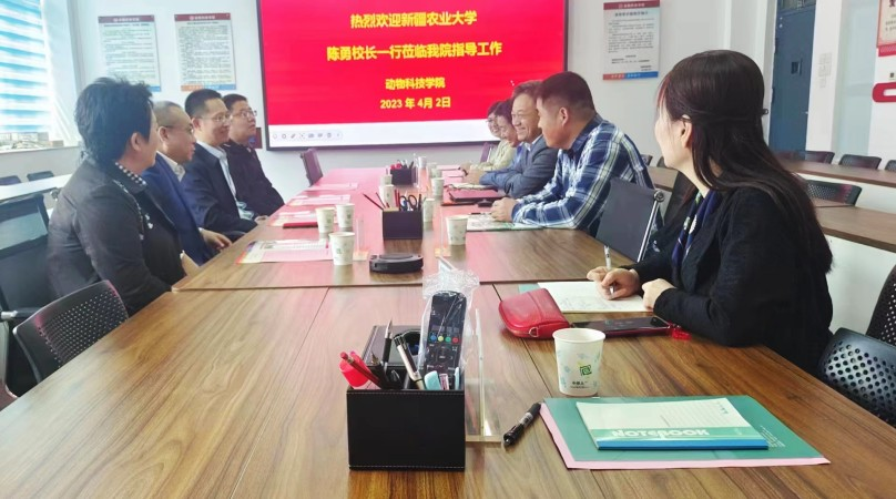 近日,新疆农业大学副校长陈勇一行到我校动物科技学院调研交流,动物科技学院院长席磊、副书记李建伟及相关老师参与此次调研交流。会议由李建伟主持。