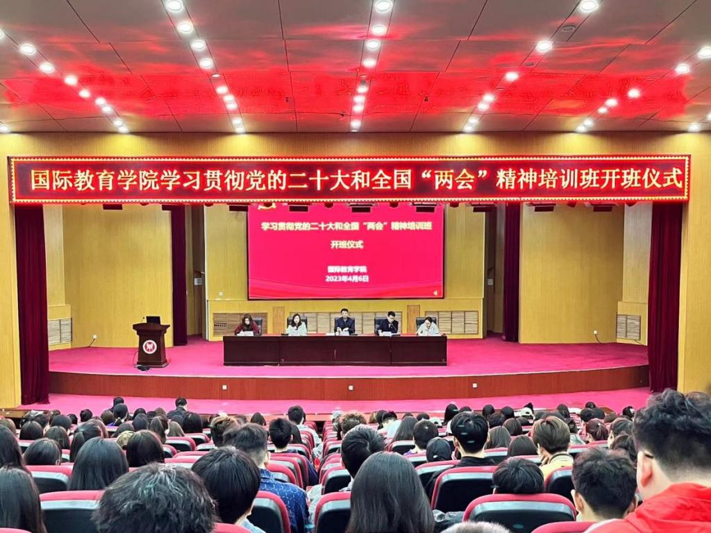 为全面领会和深入贯彻落实党的二十大和全国“两会”精神,推动党的二十大精神在学院落地生根,4月6日下午,国际教育学院学习贯彻党的二十大和全国“两会”精神培训班开班仪式暨首场专题报告在英才校区学术报告厅举行。学院全体教职工、学生党员和入党积极分子代表参加开班仪式和学习活动。会议由国际教育学院院长胡晓波主持。