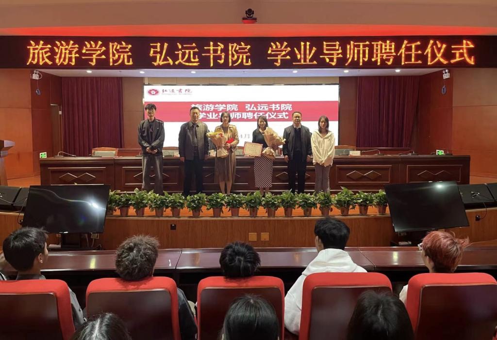 4月10日,弘远书院、旅游学院在图书馆一楼报告厅联合举办学业导师聘任仪式。旅游学院党委书记权太举、弘远书院院长赵贺然,旅游学院兼弘远书院副院长王中雨、弘远书院党委副书记兼副院长李特及两院师生代表参加仪式。仪式由李特主持。